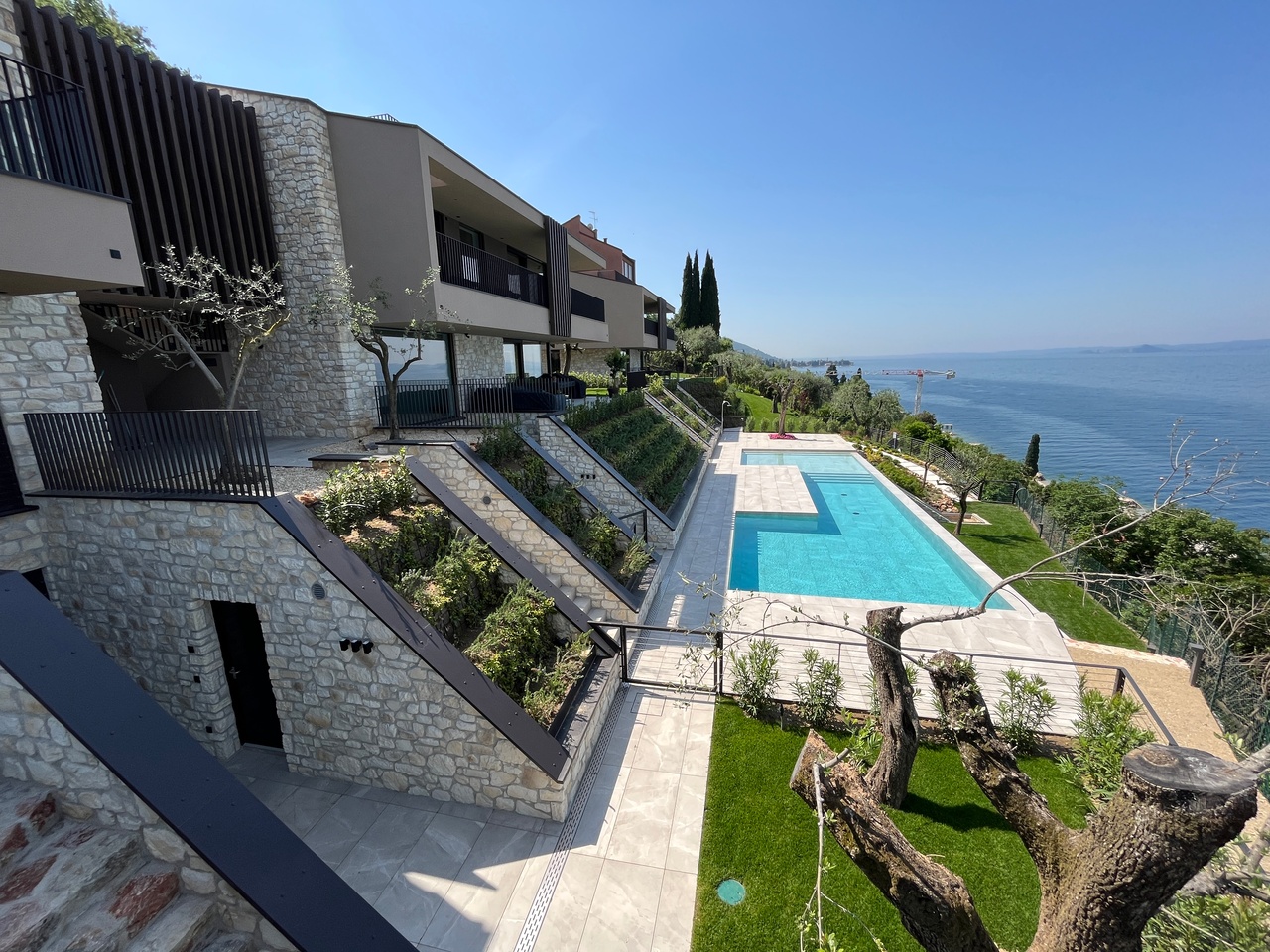 La nuova costruzione si trova a pochi passi dal lago, a nord di Torri del Benaco, nella zona denominata San Felice; gode di una vista spettacolare sul lago con accesso alla spiaggia pubblica, raggiungibile facilmente a piedi in 5 minuti.