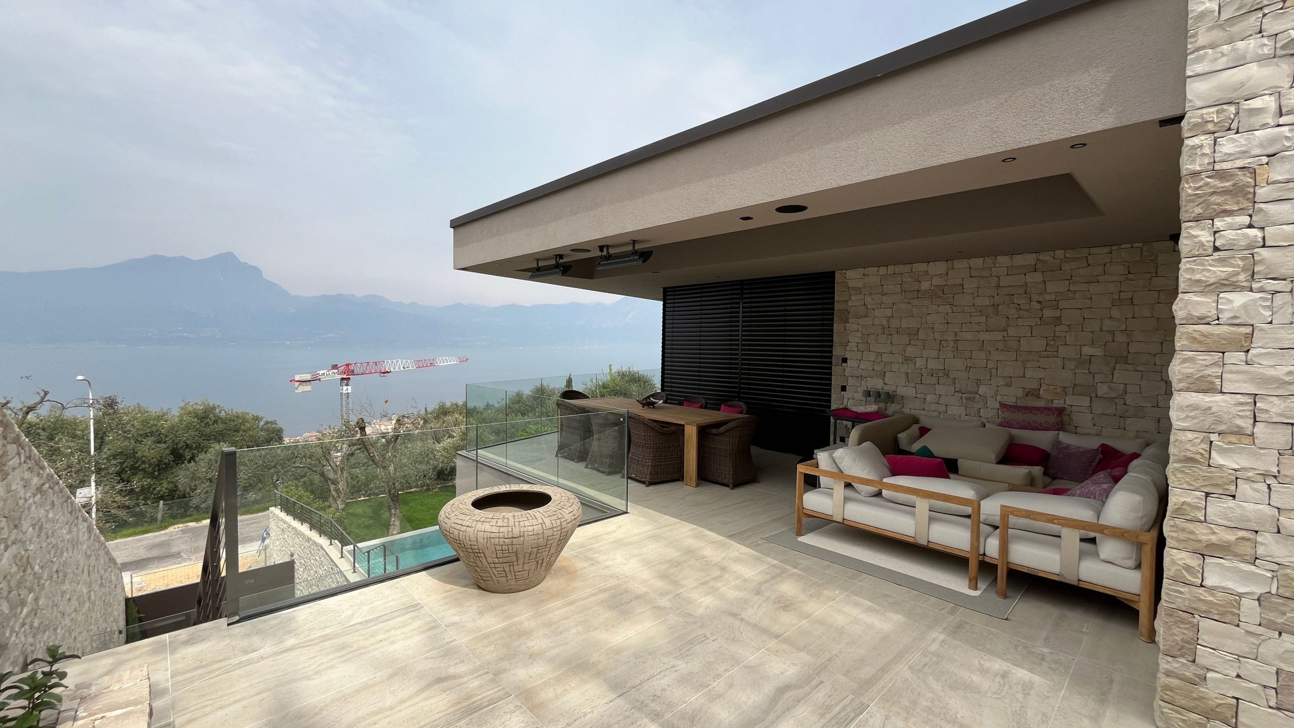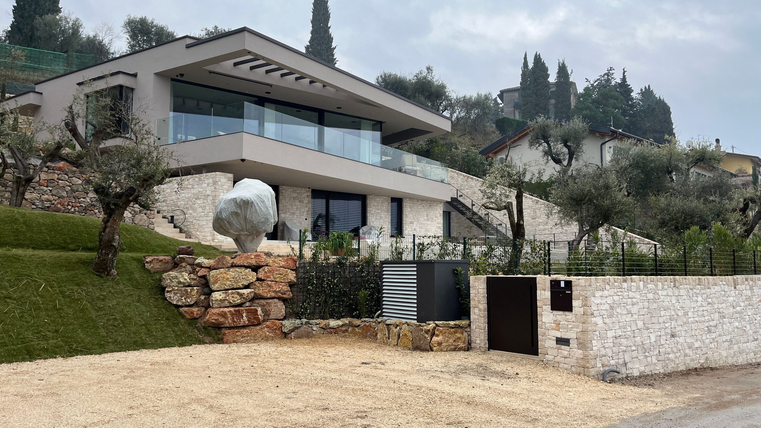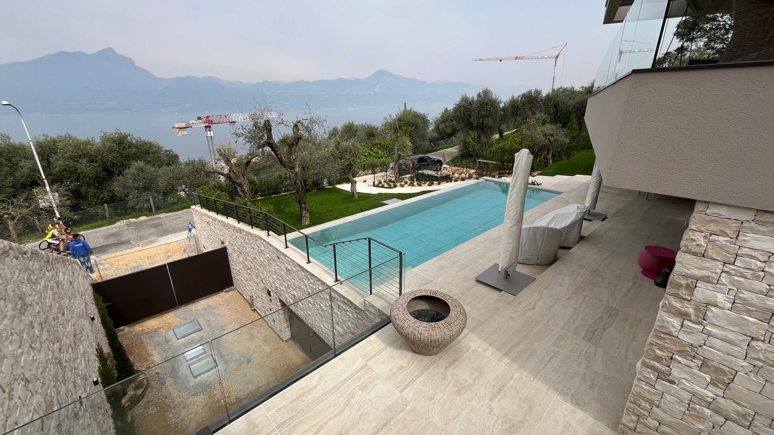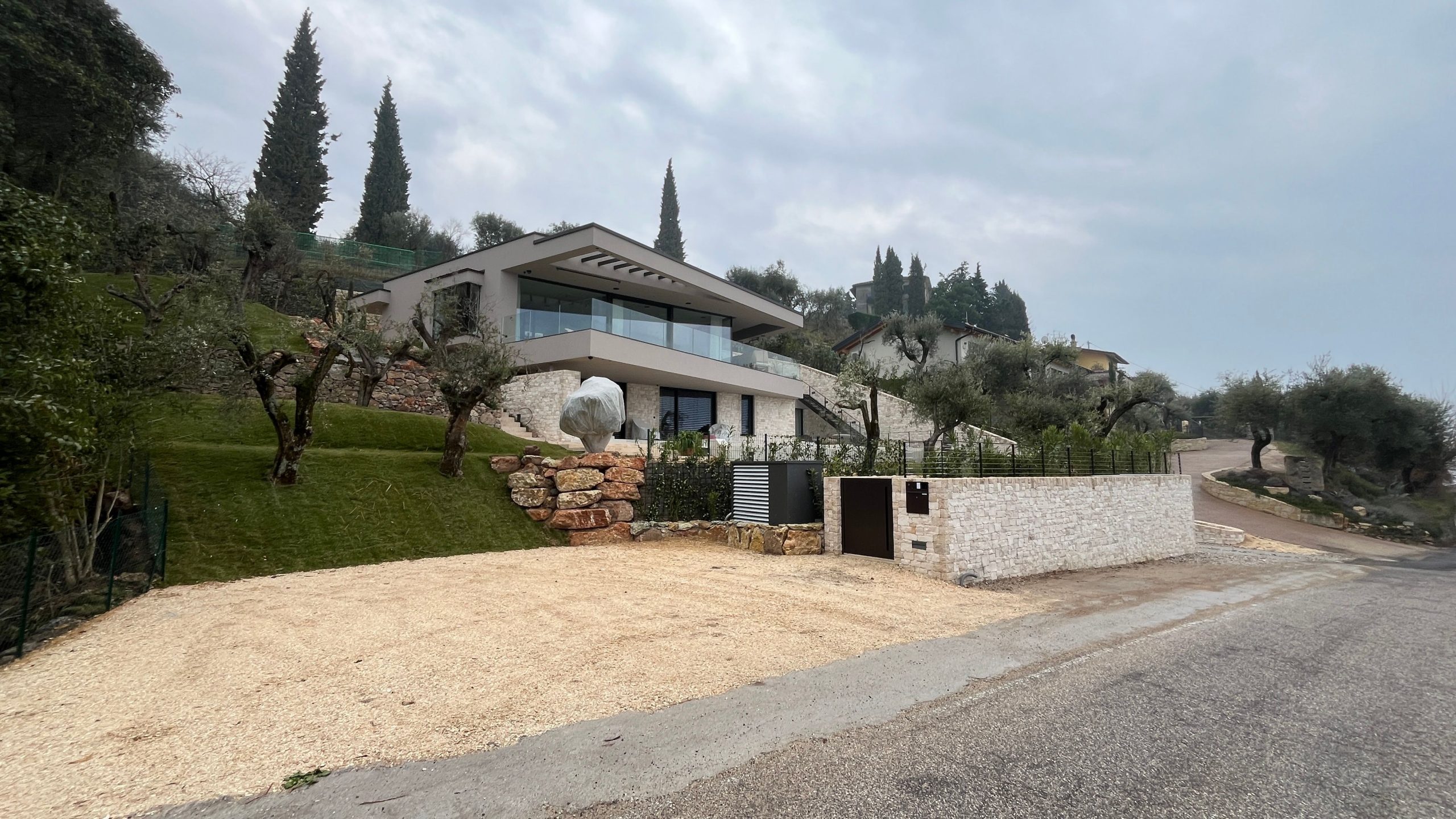 La nuova costruzione si trova al di sopra del centro di Torri del Benaco, sul pendio della strada panoramica per Albisano, con una vista spettacolare verso il paesino portuale e la grandezza e profondità del lago. La villa possiede un ingresso autonomo ed un’ampia ed esclusiva area giardino recintata. I Muri sono in sasso naturale, tutti i sentieri illuminati all’interno delle aree giardino che accompagnano alla grande piscina e che rendono la permanenza esterna un’esperienza speciale.
