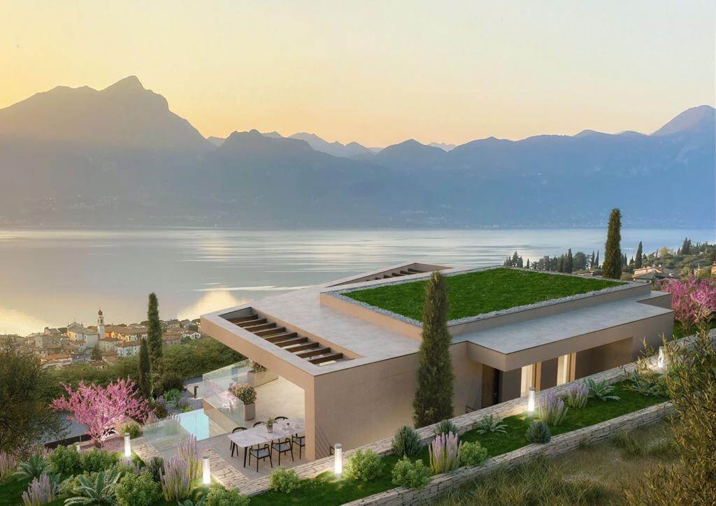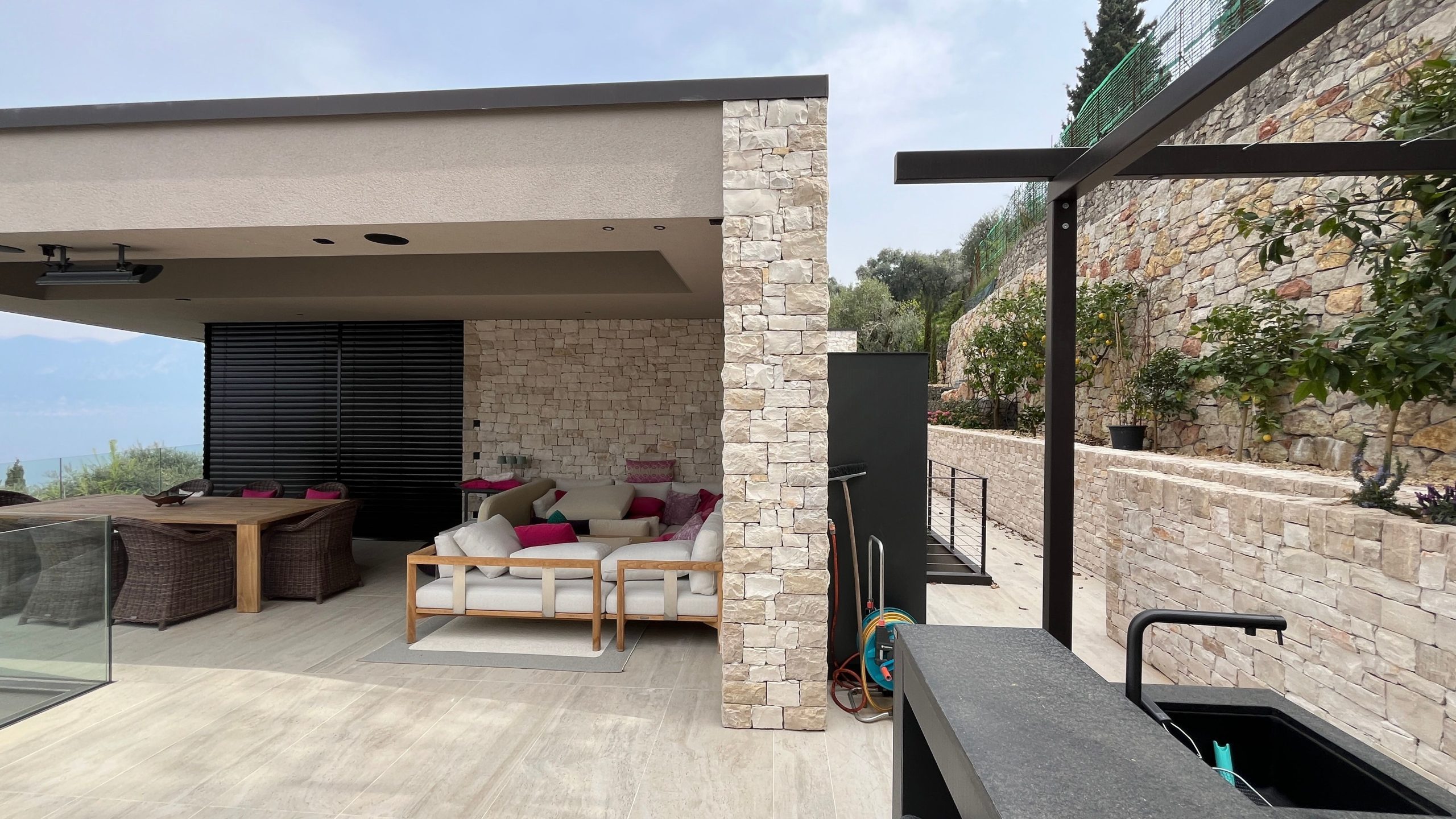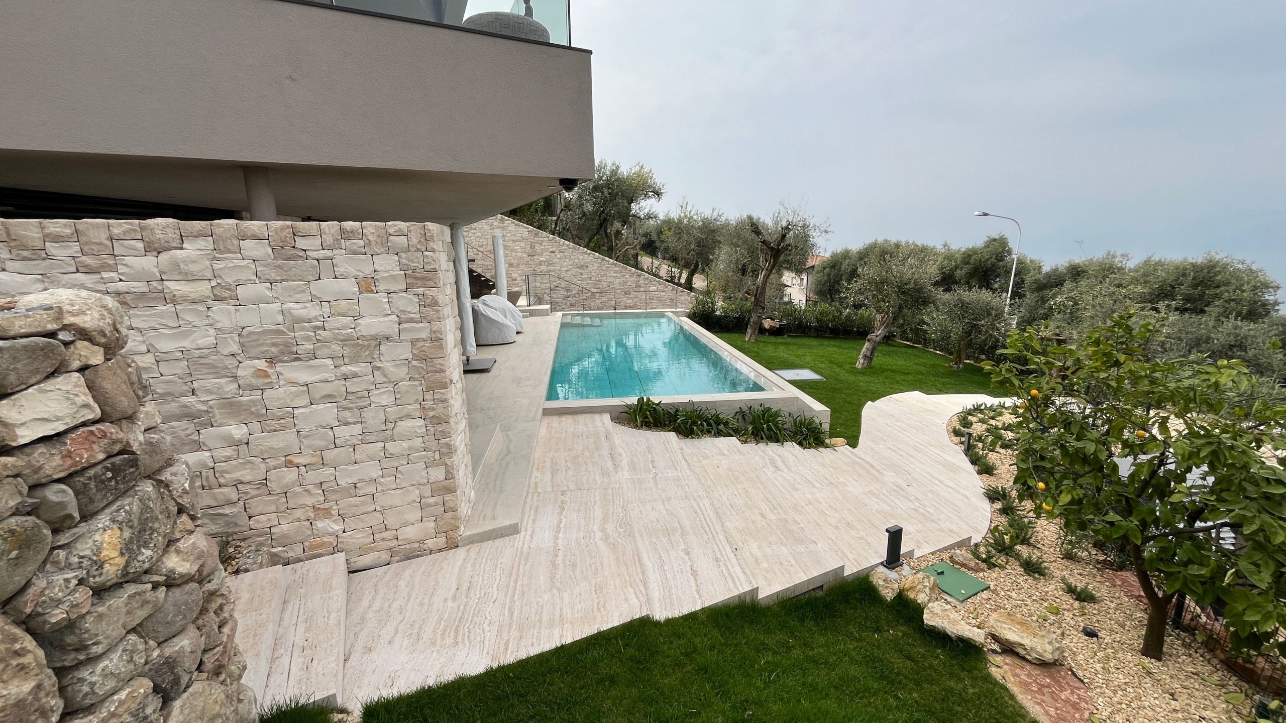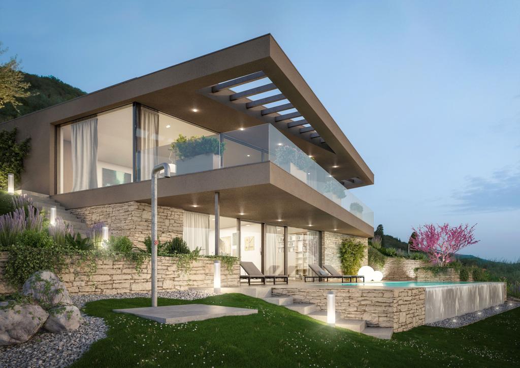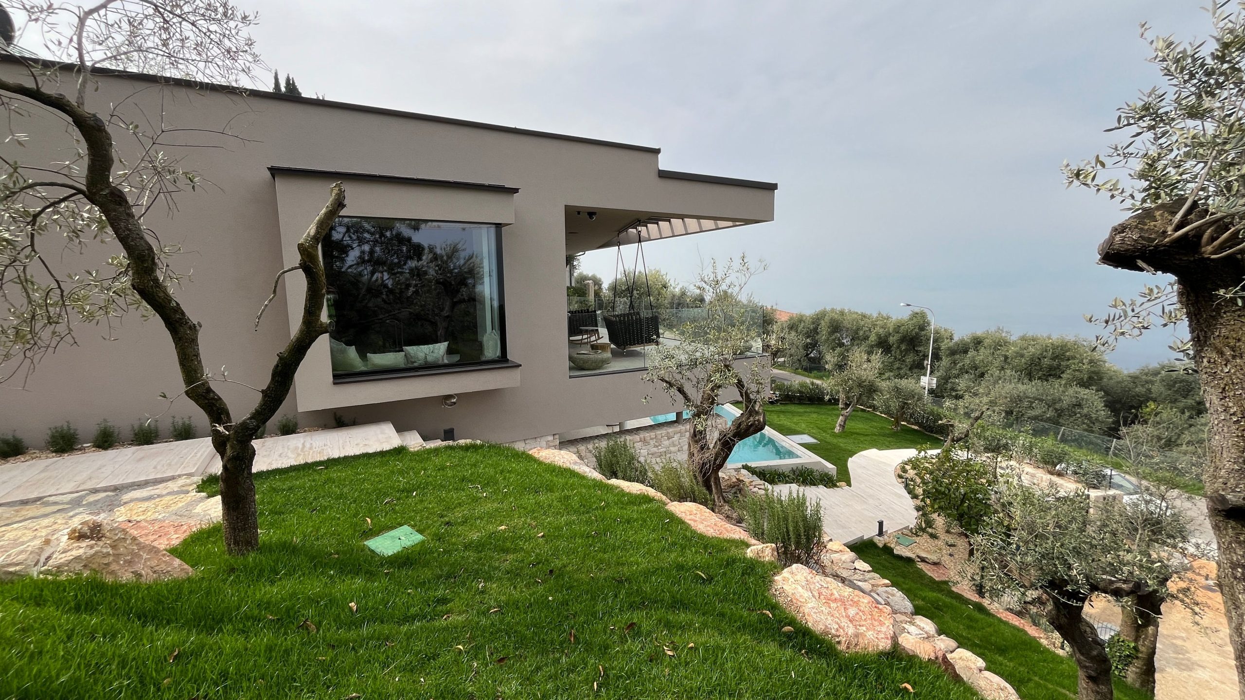 La nuova costruzione si trova al di sopra del centro di Torri del Benaco, sul pendio della strada panoramica per Albisano, con una vista spettacolare verso il paesino portuale e la grandezza e profondità del lago. La villa possiede un ingresso autonomo ed un’ampia ed esclusiva area giardino recintata. I Muri sono in sasso naturale, tutti i sentieri illuminati all’interno delle aree giardino che accompagnano alla grande piscina e che rendono la permanenza esterna un’esperienza speciale.